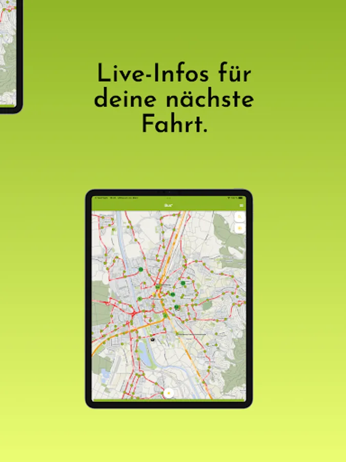 In addition to the main functions, Bus⁺ has other features to offer! Our search function enables most of the functions offered by common public transport applications, including information about the current timetable with start and finish times, travel times and fastest connections. Our map also shows the color-coded bus routes and thus visually shows possible bus connections.