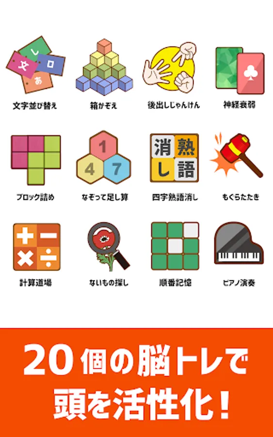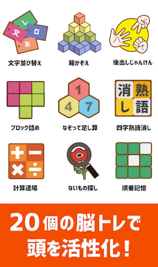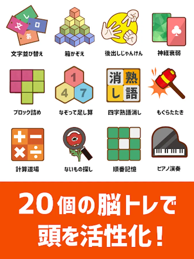 ・ Notify the time of brain training with an alarm! Remember to train every day!
