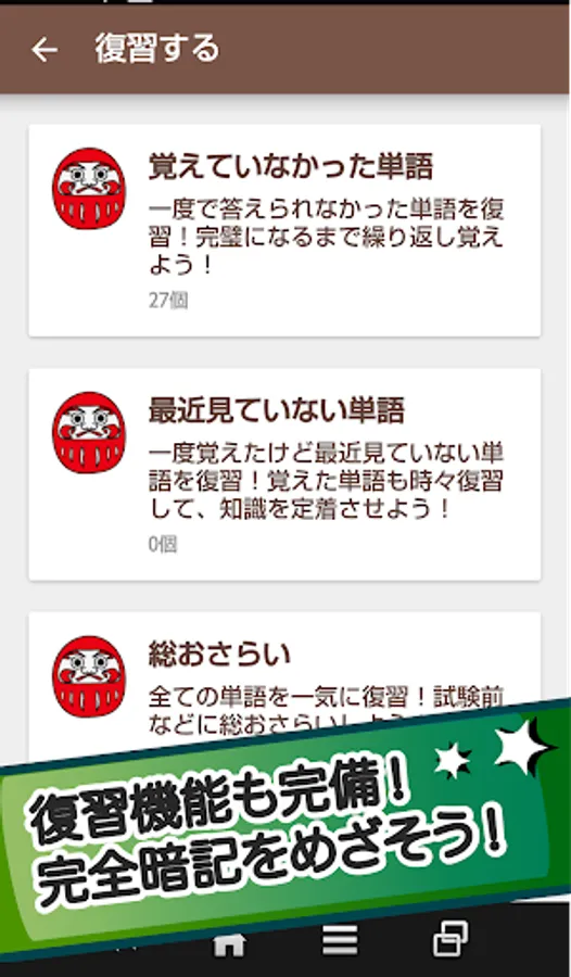 You can review "only unclear words" and "only words that you tend to forget over time" according to purpose!
