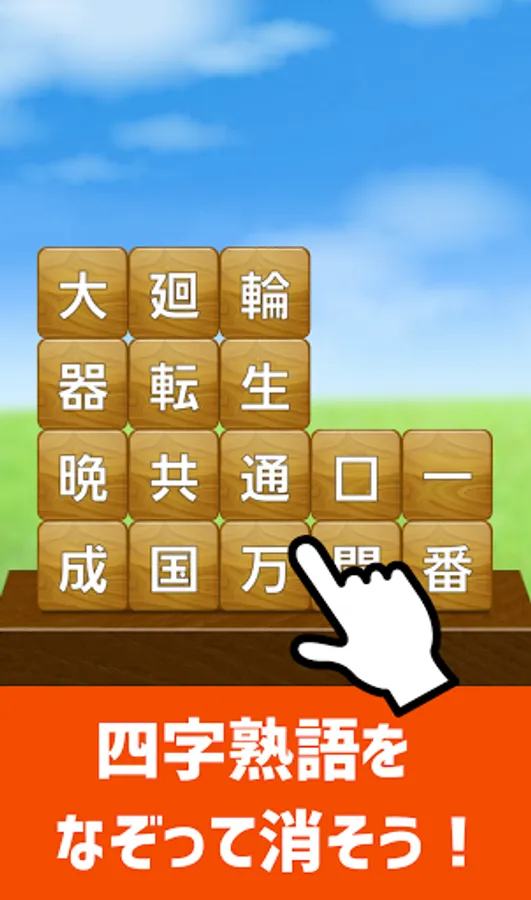 Find the four-character idiom from the kanji block and trace it to erase it!