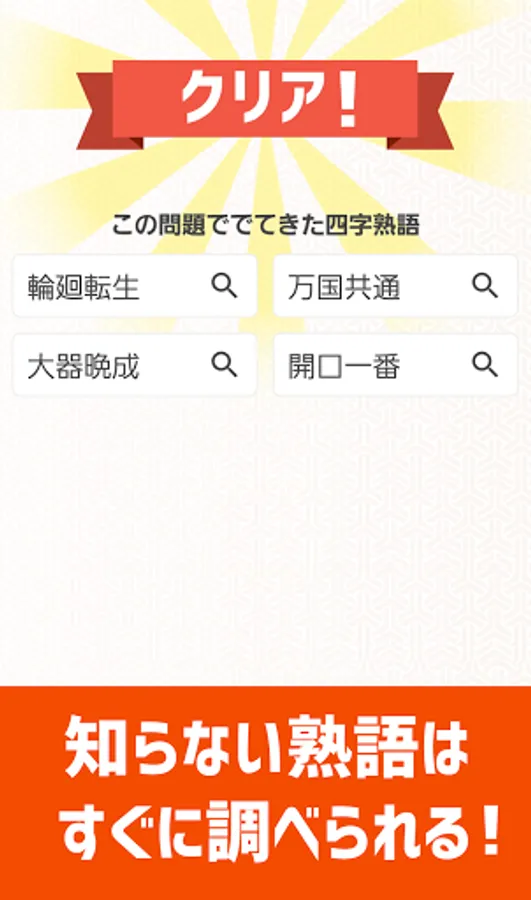 After clearing the game, a list of idioms will be displayed, so you can learn more and more even if you don't know the idioms!