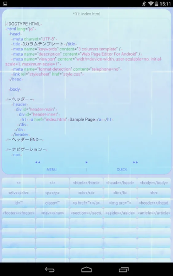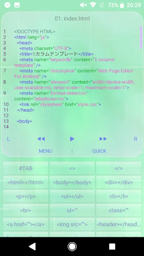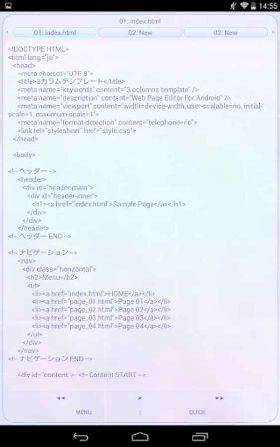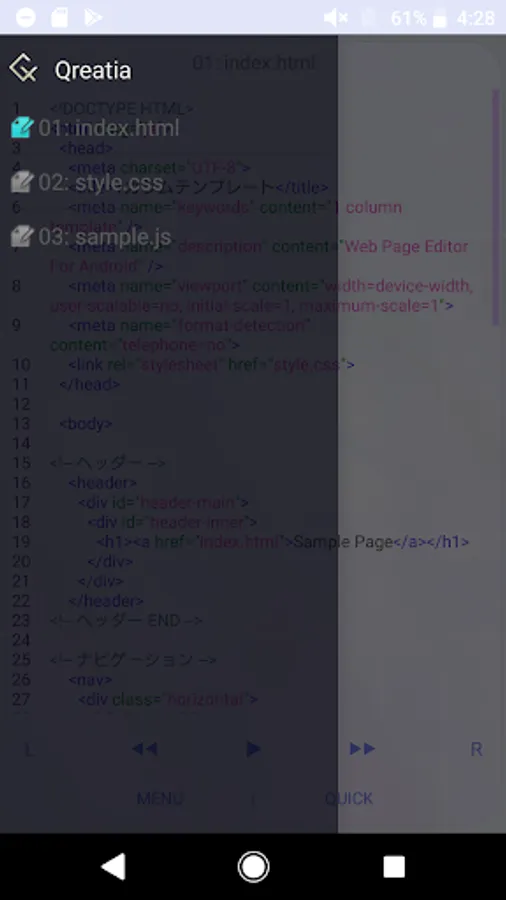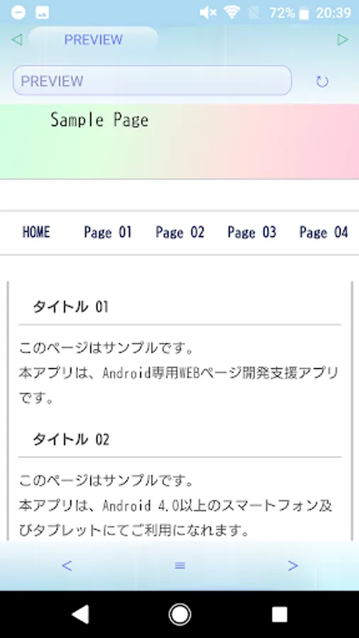 Press the ▶ button to open the preview browser built into this application. A preview of the HTML file you are currently editing is displayed. You can quickly check the actual display on the web.