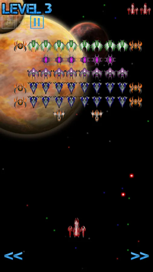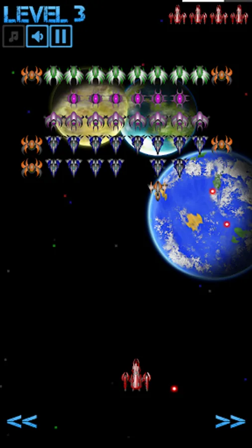 14 fast-paced levels of increasing difficulty. Will you be able to annihilate all aliens?
