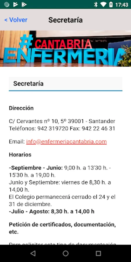 The official app of the College of Nursing of Cantabria allows access to information about the activity of the College, both for its members and for the general public. Through the official app of the School you can access general information about the School, the Publications of the School, the videos of your Web TV, forms of complaints and suggestions, and search for members. Additionally, the members can access their private area (one-stop shop) through which they can enroll in courses and seminars, download certificates of courses and membership, among other functions.