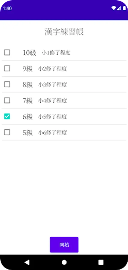 Contains 10th to 5th grade questions of Kanji Kentei.