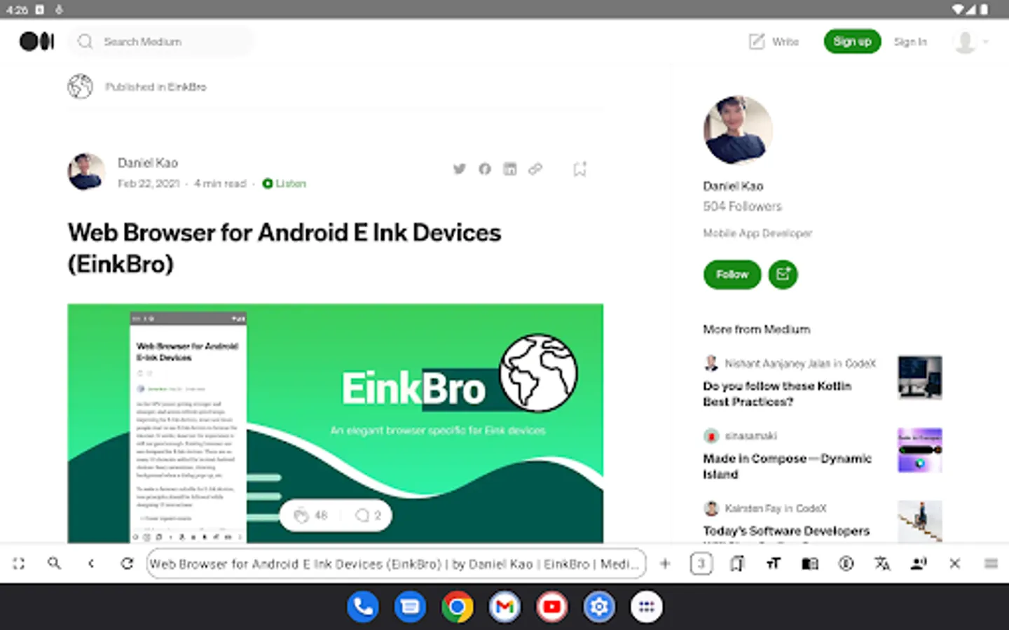 Zero tracking codes. Source codes are open sourced on Github: https://github.com/plateaukao/einkbro