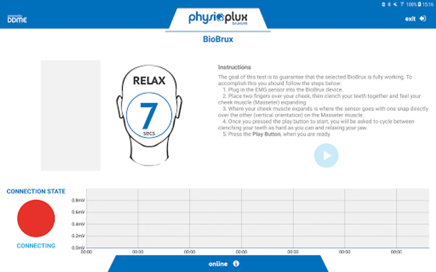 This app is for testing the hardware used in the GEMPro Sleep Wellness Monitor System. It checks to see if the Bluetooth enabled amplifier and Pulse Oximeter are functioning correctly. The app pairs with the BioBrux amplifier and the wrist pulse oximeter and displays real time data received from the two devices.