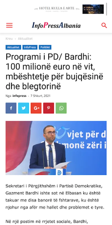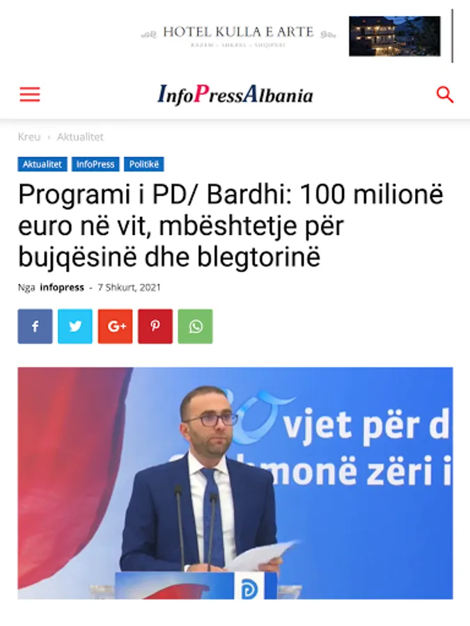"InfoPressAlbania", është një media e re online, e lançuar më 04 Nëntor 2018. Synimi i "InfoPressAlbania" është informimi në kohë reale i ngjarjeve, por edhe zhvillimeve të tjera nga politika, showbiz, sport, kulturë, etj. Moto e "InfopressAlbania" është: Lajmi vjen tek lexuesit përmes këndeve të ndryshme të vëzhgimit. Ne hulumtojmë përtej lajmit për të shpalosur për lexuesit të vërtetën. E veçanta e InfoPressAlbanai qëndron në promovimin e "Modeleve të Suksesit" të bizneseve dhe individëve në fusha të ndryshme, që me shembullin e tyre janë motivues për gjithsecilin. I përkushtuar për të ofruar një mbulim origjinal konstant në të gjithë Shqipërinë mbi fushat e lartpërmendura, InfopressAlbania, synon gjithashtu, të sigurojë akses në lajmin e parë, duke ofruar një staf gazetarësh që do të shërbejnë si sistem rrjetizues për mbulimin e informacionit në të gjithë territorin.