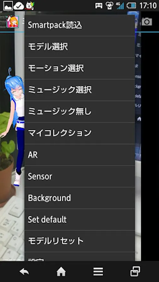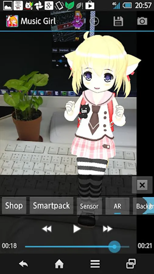 You can enjoy the AR (Augmented Reality) effect by the “AR On/Off” function through the camera of your own mobile device, smartphone etc. Through this AR function, your favorite character preforms dances as is in your room and can take picture together with you!