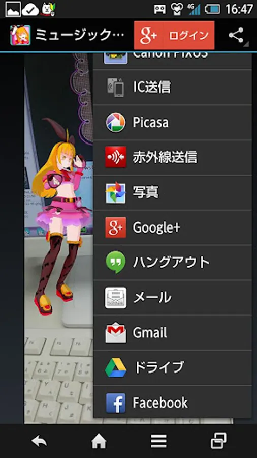 You can take composite photograph when “AR” function is “On,” and share the photograph to others through social medias such as Instagram, Facebook, Line, etc.