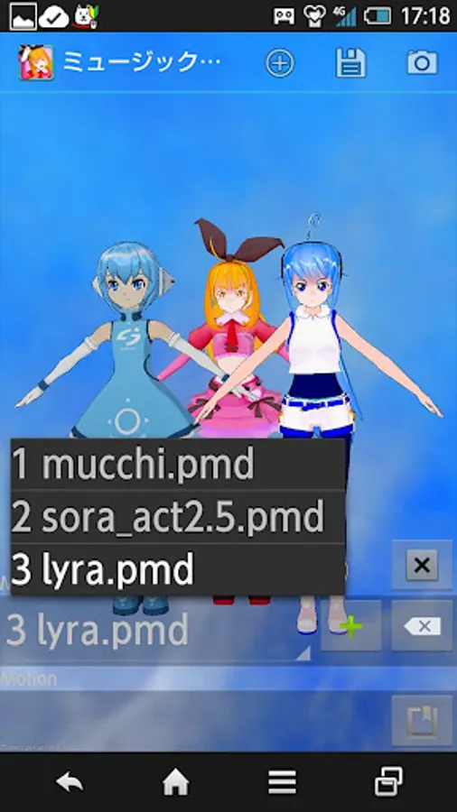 It is possible to add and display multiple characters (models) in one mobile device, and change the motion of each added character (model).