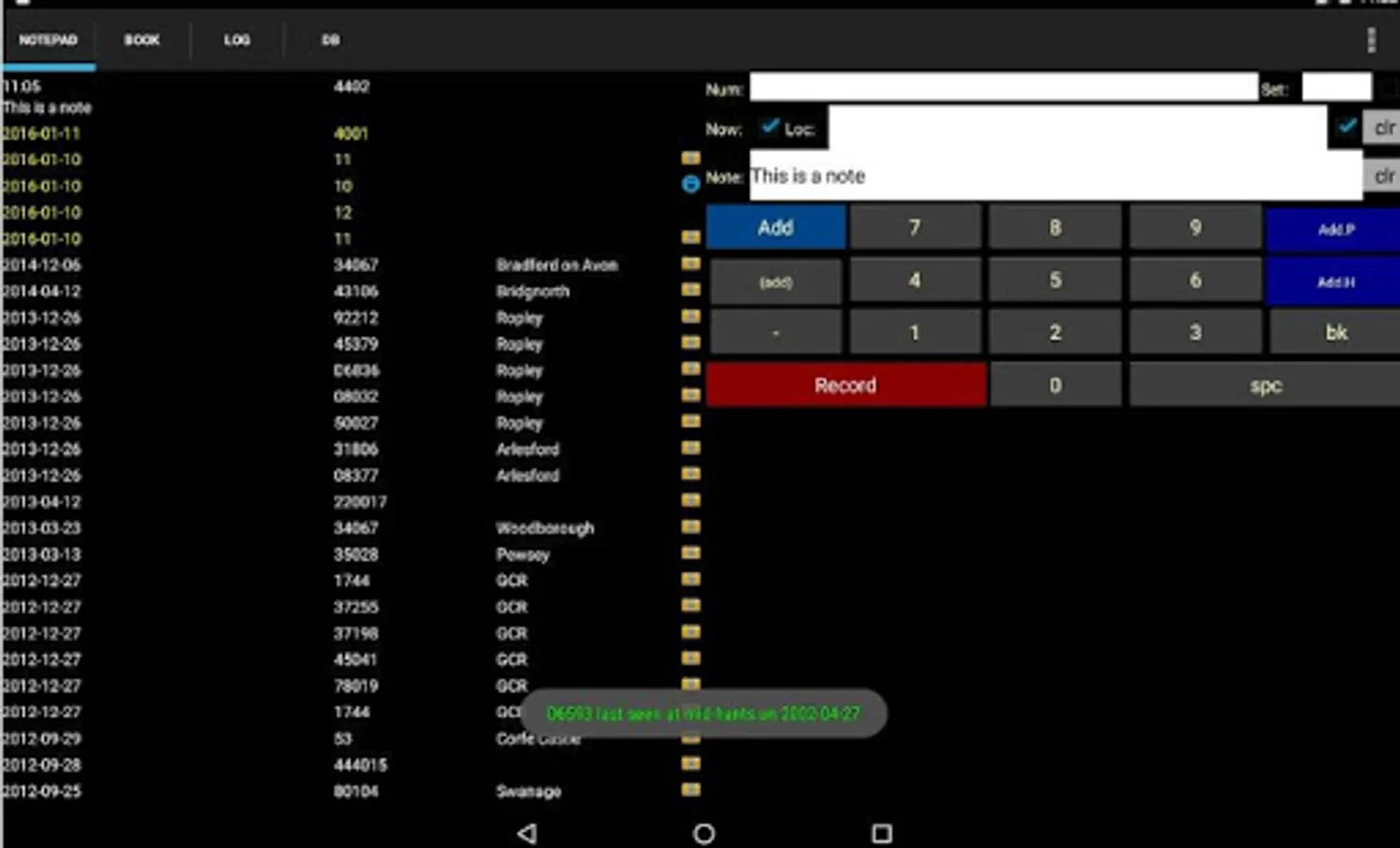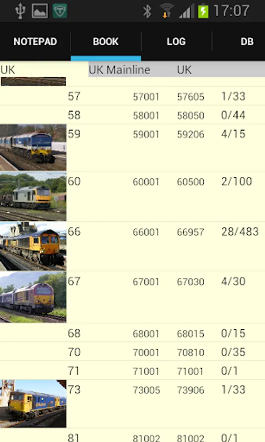 * Database of rolling stock numbers (UK, some Swiss and German railways)