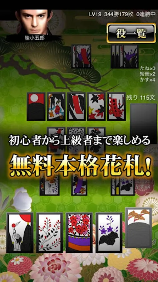 難易度別に数種類の対局モードを用意しているので自分の力量に合わせて花札を楽しめます。