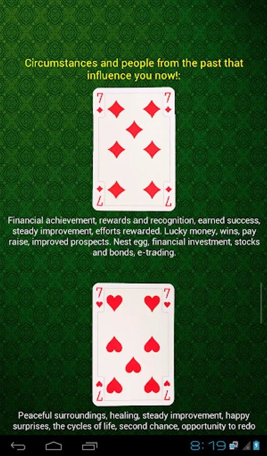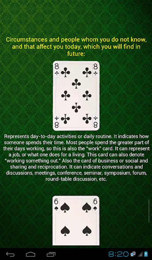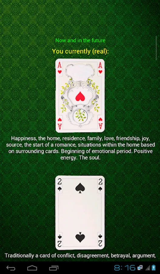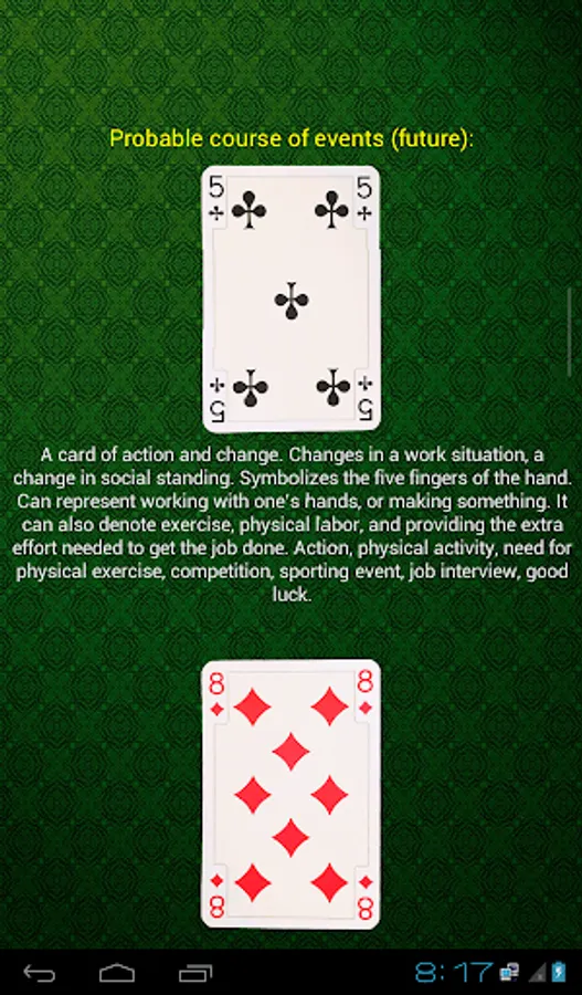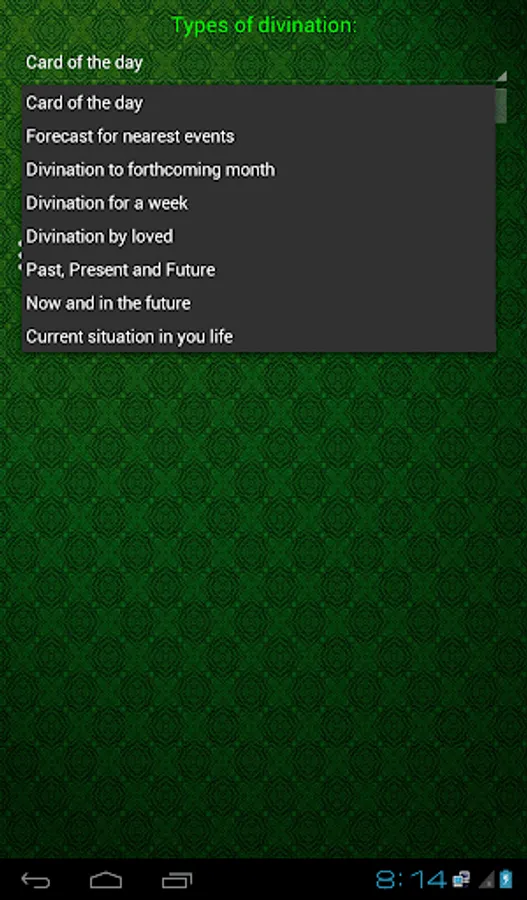 Divination will help You with advice for the current dayweekmonth; talk about the current situation in Your life; tell about the relationship with the partner; sees the past, present and future.
