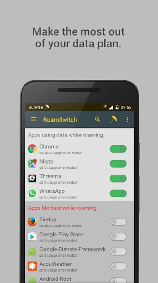 - Extend Android Functions: With RoamSwitch you cannot only you block background data usage but all mobile internet usage for selected apps