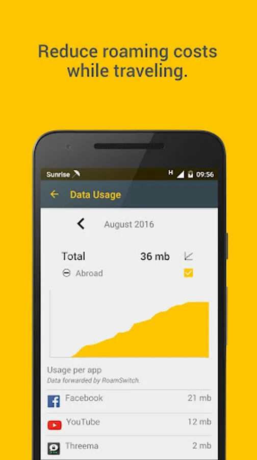 The travel app RoamSwitch lets you optimize your data usage during travel in roaming areas. You actively reduce your mobile data usage. Saving on roaming costs will feel like childs play in future.