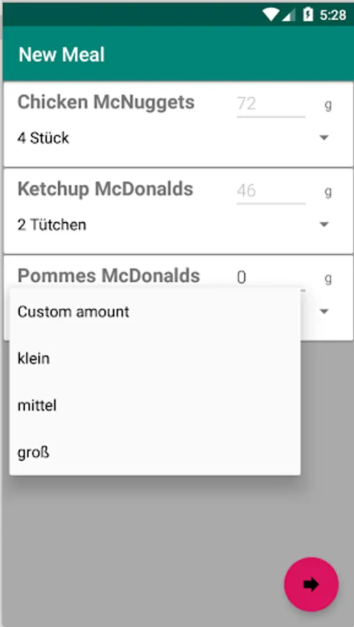 The concept is simple: The user picks one or more food items from a list and enters their amount - optionally he can pick one of max. three pre-defined typical amounts. With this information the app will calculate FPUs.