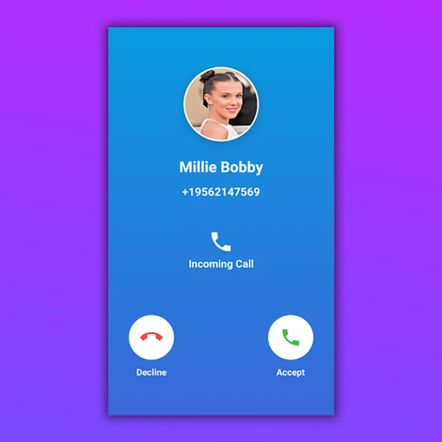 Millie Bobby Brown call you : Fake call and video call application to accompany your days in your free time when you feel lonelyand boring then entertain yourself with fake calls from your idol. this application to simulation a fake chat messenger with a fake call and video call, we add option to start live with your Hero, to look a real chat messenger live. all this just for prank your friends or your family to make a fake chat with Millie Bobby Brown to be a real chat, you have three option to connect with Millie Bobby Brown Call and Millie Bobby Brown calling voice, Millie Bobby Brown live chat or Millie Bobby Brown calling video.