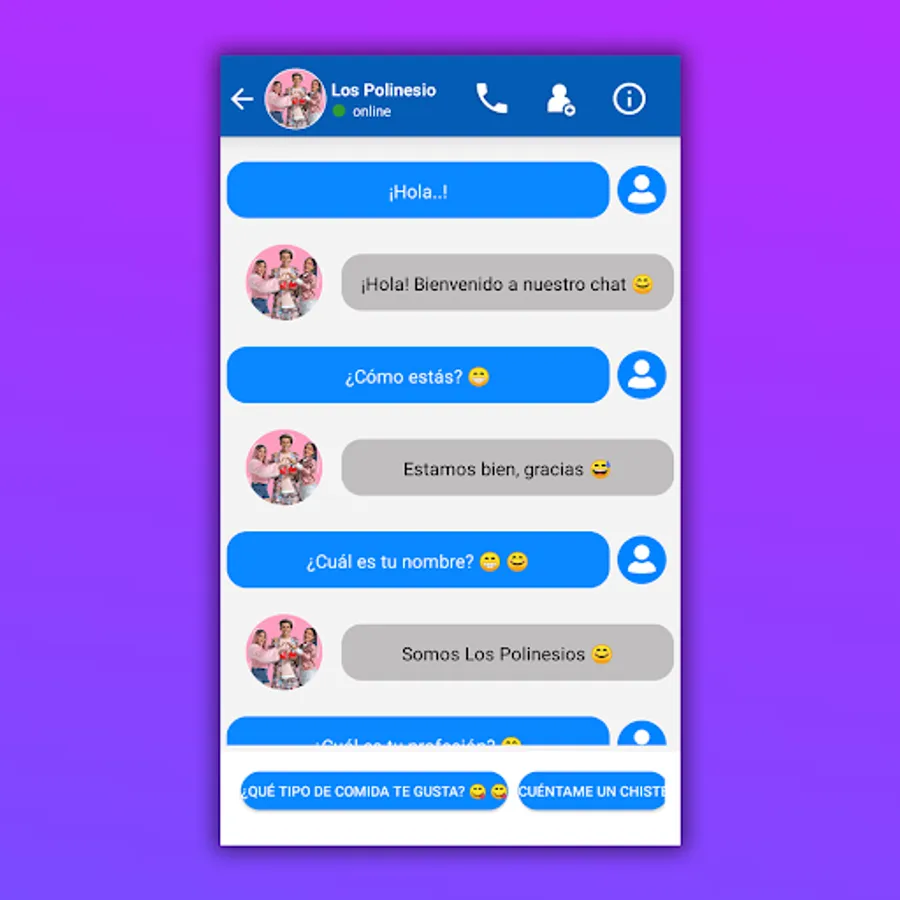 Los polinesios juego :call you : Fake call and video call application to accompany your days in your free time when you feel lonelyand boring then entertain yourself with fake calls from your idol. this application to simulation a fake chat messenger with a fake call and video call, we add option to start live with your Hero, to look a real chat messenger live. all this just for prank your friends or your family to make a fake chat with favorite Los polinesios Member to be a real chat, you have many option to connect with Rafa Polinesio Call and Karen Polinesia calling voice, Lesslie Polinesio live chat or PlaticaPolinesia calling video.