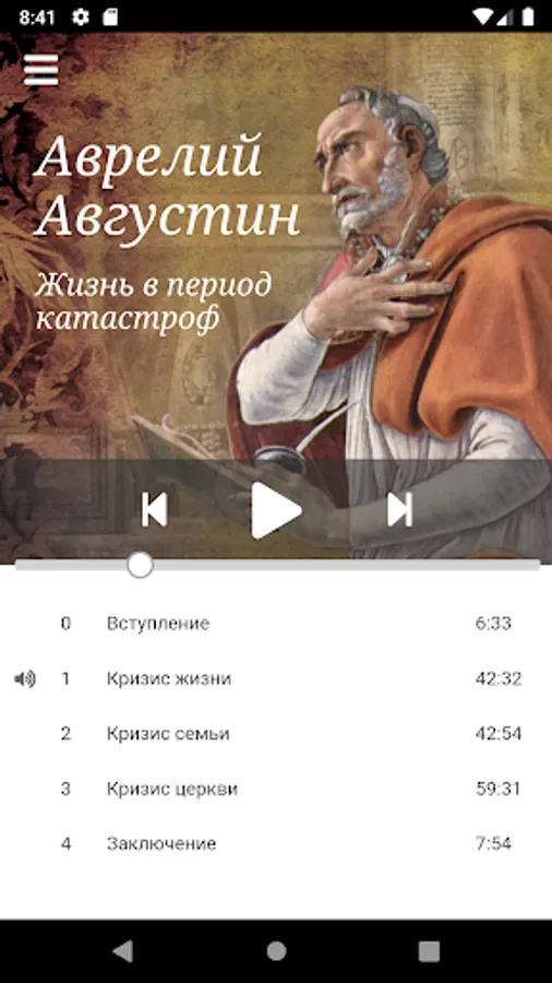The literary and musical composition from the series “Theological Portraits” tells about the life and views of one of the greatest figures of Christianity, Aurelius Augustine of Hippo. Particular attention is paid to the problems of the family and the church that Augustine faced.