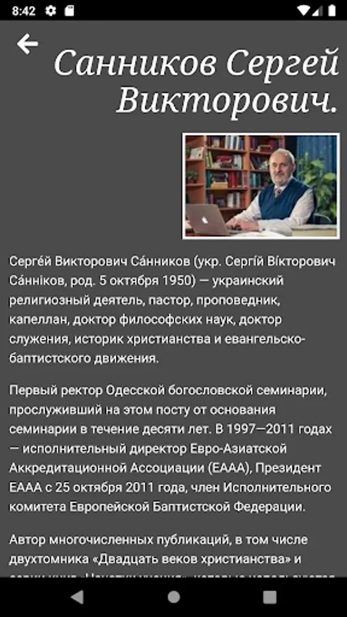 The author is reading - a teacher of the history of Christianity, Dr. S.V. Sannikov.