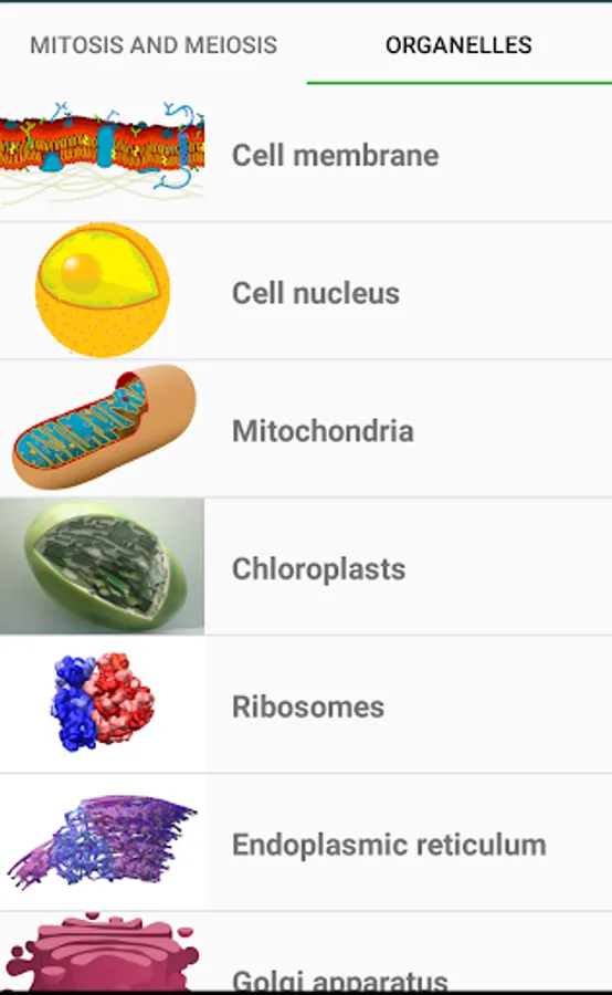 The structure and function of cell organelles: nucleus, ribosomes, membrane, mitochondria, chloroplasts, endoplasmic reticulum, Golgi apparatus, centriole.