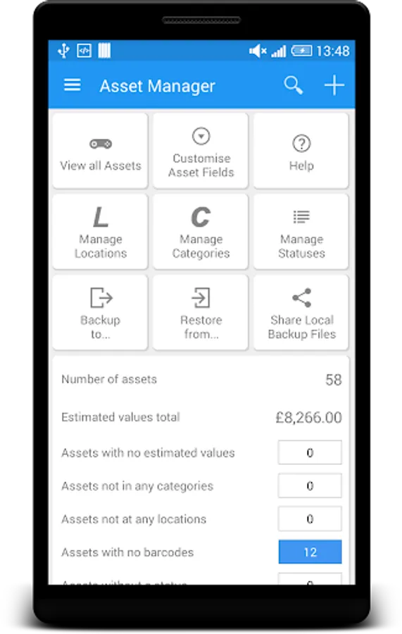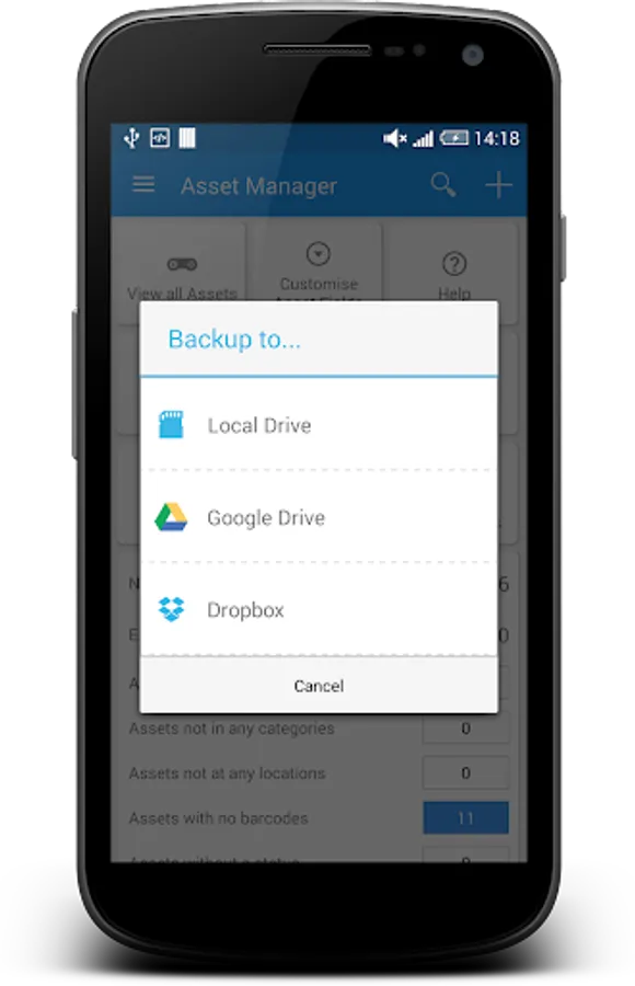 ✓ Create backup files for your asset records and images to your device SD card and/or to the Cloud (Google Drive™ and Dropbox™).