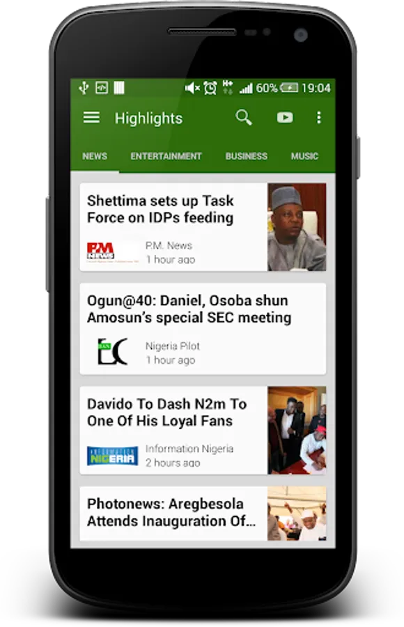 Naija News Feed app for Android brings Nigerian news to your fingertips on your phone and tablet. From entertainment, sports, business, jobs, technology, health, food, to education news, read news stories from dozens of top publishers, play audio or video attached to articles, and share stories with your family and friends. Integrated with YouTube properly, this app also lets you watch videos, including Live TV, from your favourite channels.