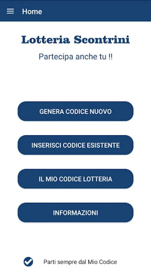 NB: It is not the official app of the Receipt Lottery The purpose of the app is to simplify the management and generation of the Lottery code as much as possible.