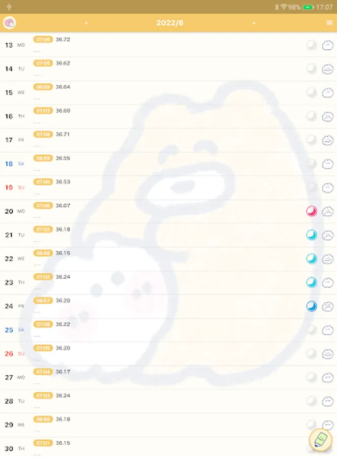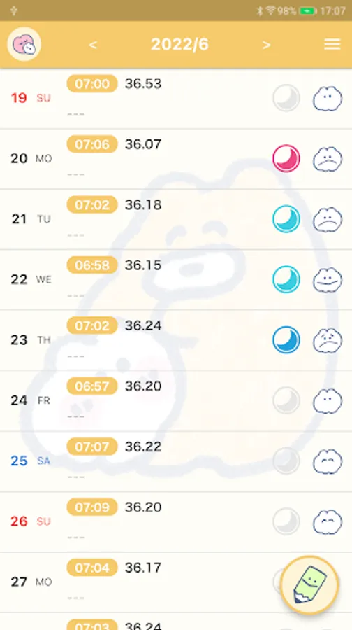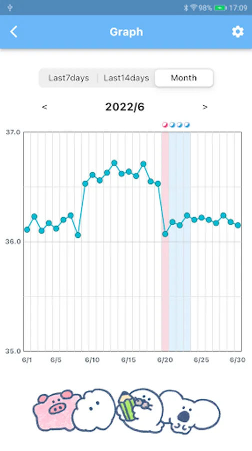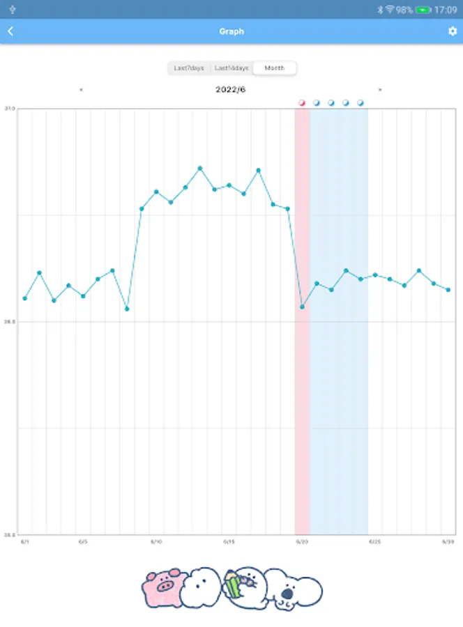 We hope that you will enjoy recording your period and temperature measurement with the cute mokmok-chan characters.