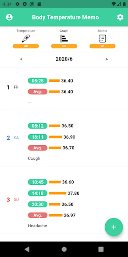 - Displays the average daily body temperature