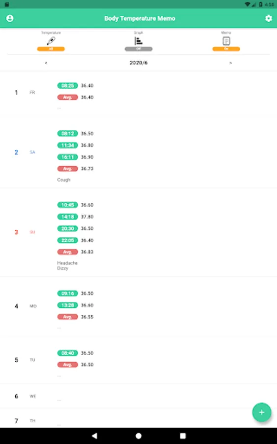 A simple body temperature recording app that can be used easily.