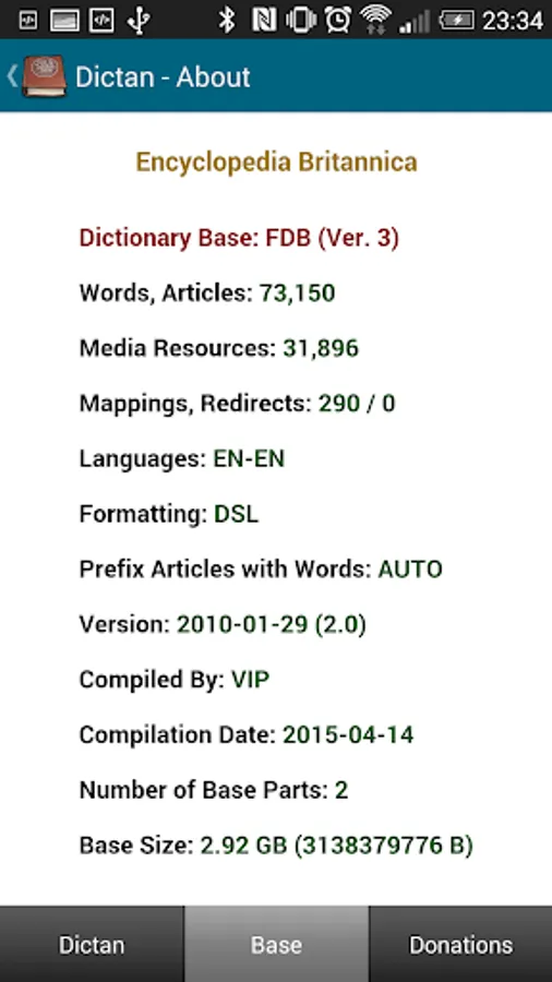 Dictan is a free Dictionary Viewer for Android which supports .fdb and .zd/.zpak dictionary bases. These formats are open, so you may download lots of free .zd dictionaries, handbooks, and encyclopedias from the Internet or create your own ones. Put .zd bases into /sdcard/dictan/ and they are ready for viewing! All extra info and the tools to create your own dictionaries are available at WWW.SOFTEX.INFO