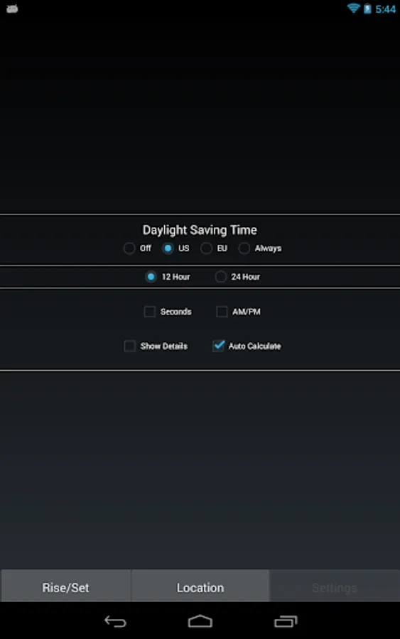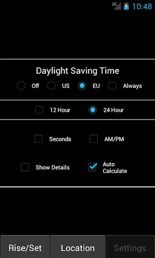 Choose to see more or less details. Show or hide seconds, AM/PM, and if the US or EU daylight savings time is used.