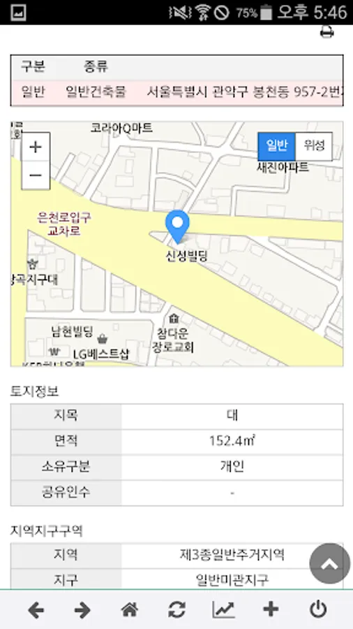 건축물대장과 함께 해당 지번의 지도와 간략한 토지정보도 함께 확인할 수 있습니다.