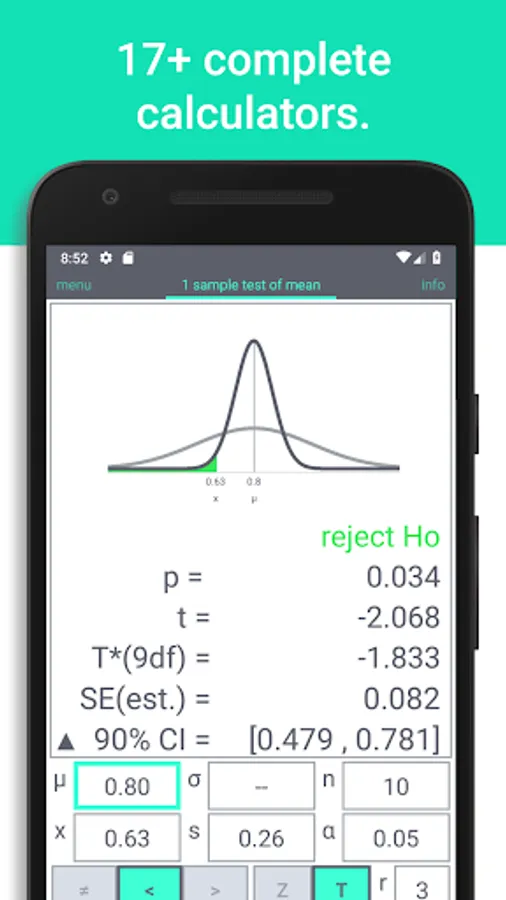• Complete results. From the standard error to the Z score, to the p-value and ""reject Ho?"" conclusion, Statmagic calculates and returns every important value for every test. (And Statmagic PRO’s calculators have been tested exhaustively to ensure that they return correct answers, first and foremost!)