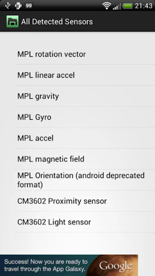 The purpose of this application is to give you the fullest possible information about the sensors in your device. This includes but is not limited to: