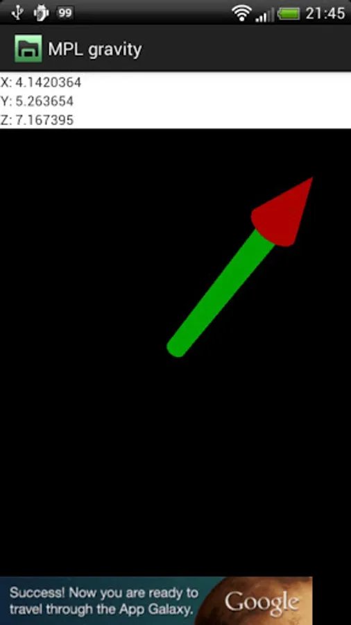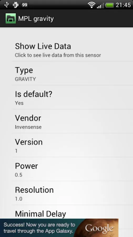 - Gravity - Measures the force of gravity in m/s2 that is applied to a device on all three physical axes (x, y and z).