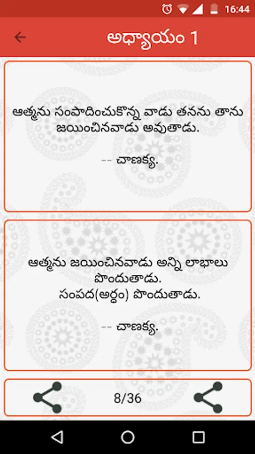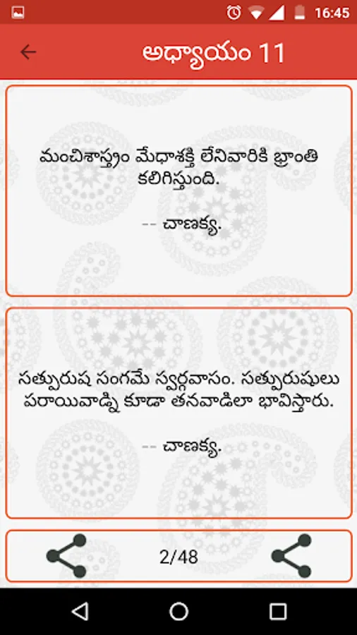Chanakya Neeti Telugu app is collection of sayings about: Life, Work, Money, Wife, King, Country, Wisdom, Rule, Truth, Love, Friendship, Man, Women etc.