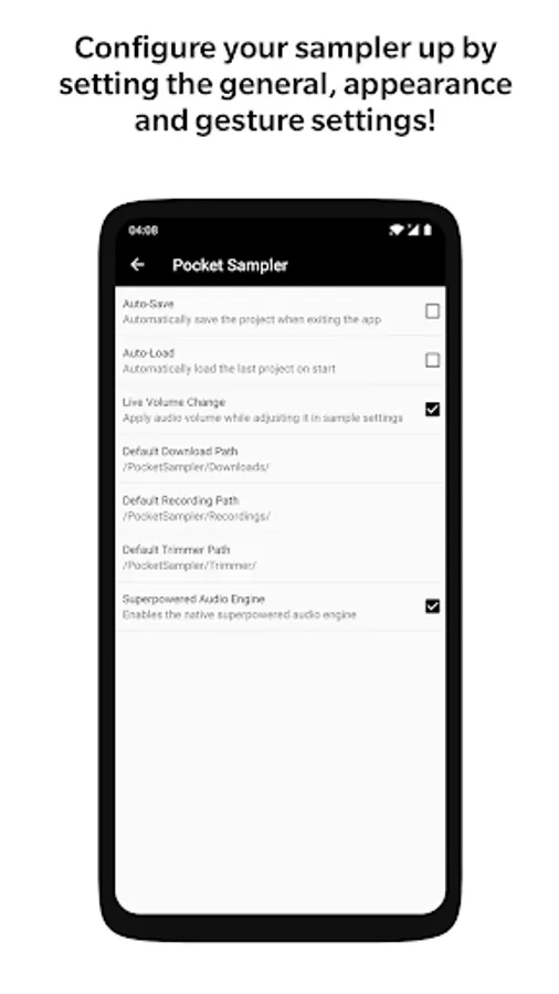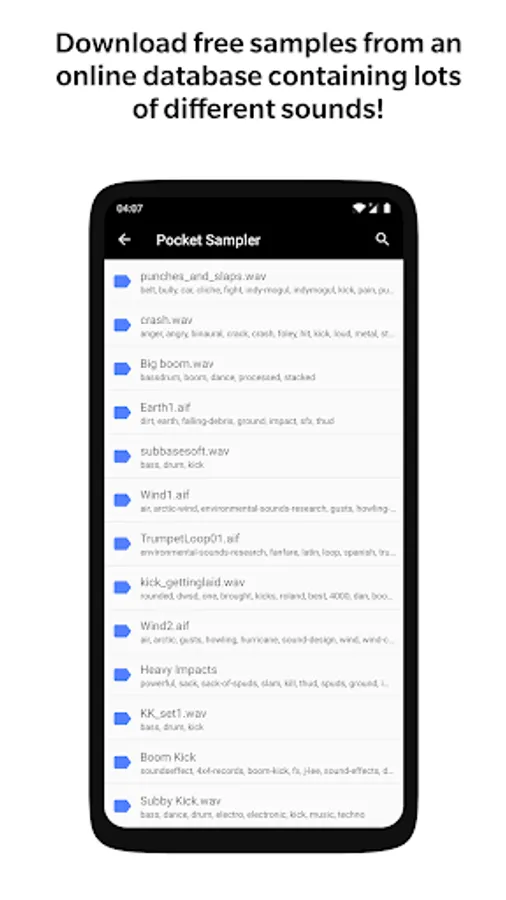 Pocket Sampler also gives you access to an online database which contains tens of thousands of different audio samples which you can download and use. Supported audio files include MP3, WAV and AAC file types.