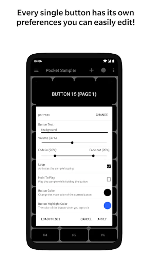 If you don’t want to configure each button individually, you can create your own pre-sets and load them automatically to your button sets. Once you are done setting up your sampler, you can save the project and load it afterwards when needed.