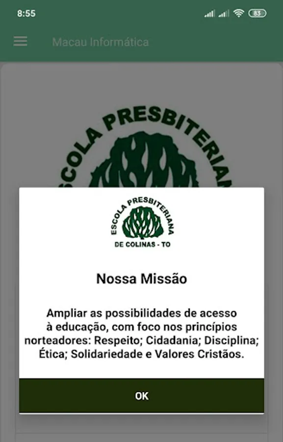* With this Application, the Parents and Guardian will be able to have a complete Monitoring of the Student in the Dependencies of the Presbyterian School of Colinas - To, receiving notification about the most important information of the student.