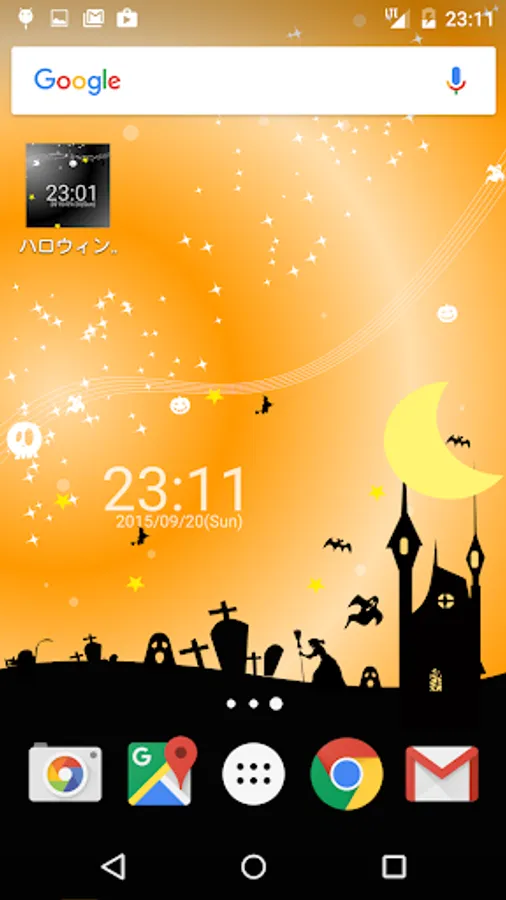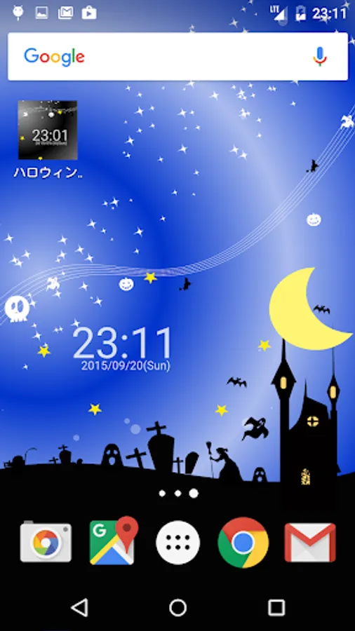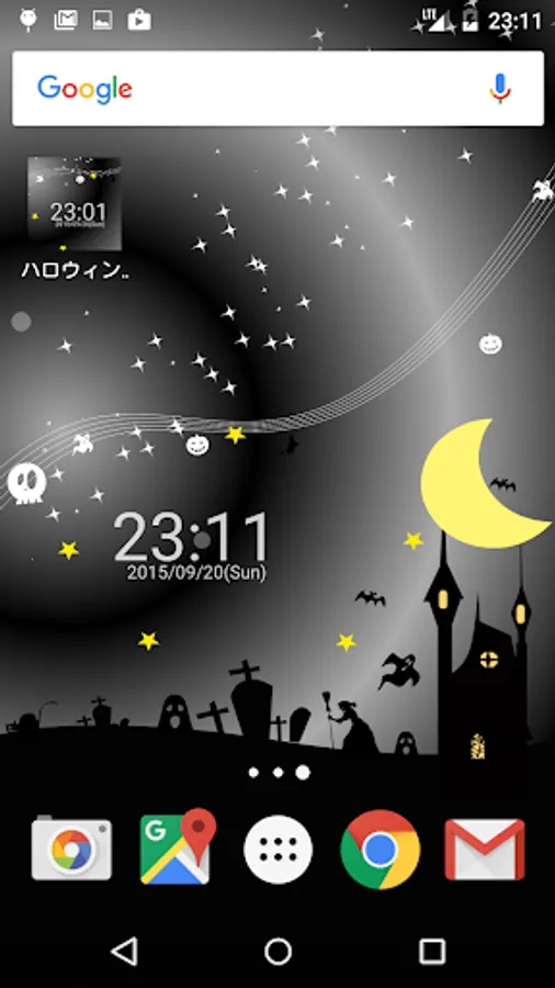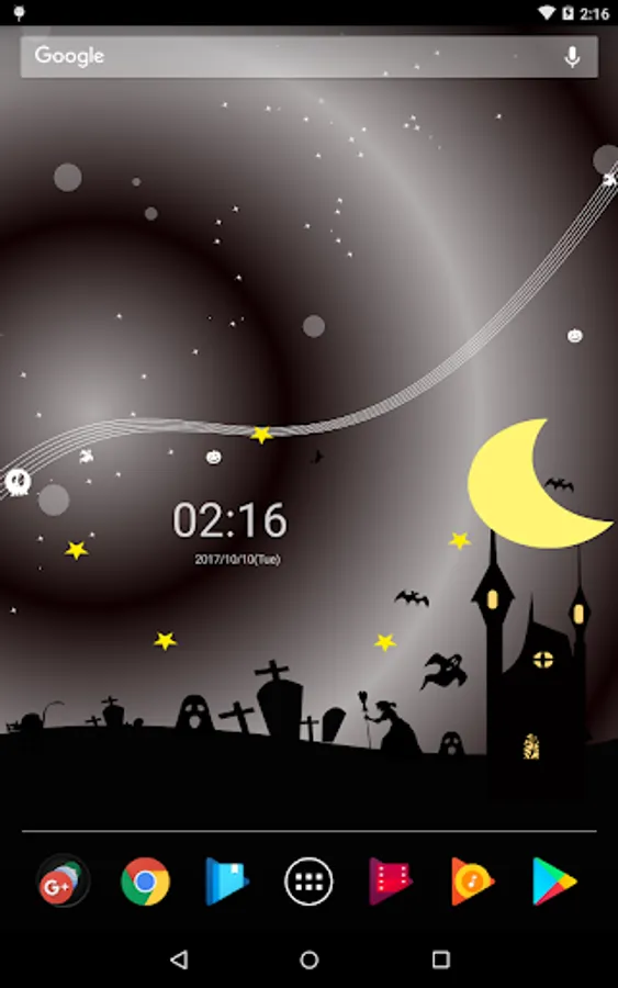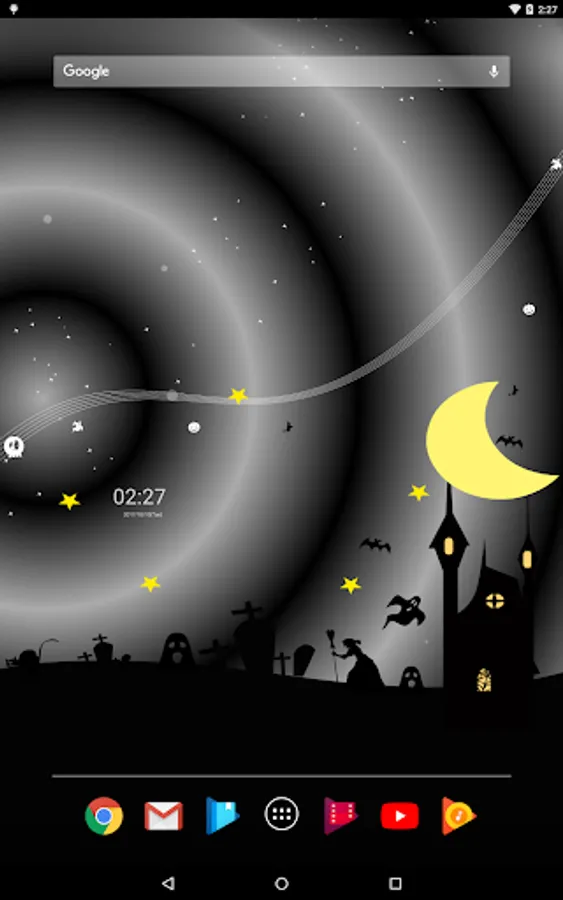 Background displays sparkle, cemetery, ghosts, bats and so on.