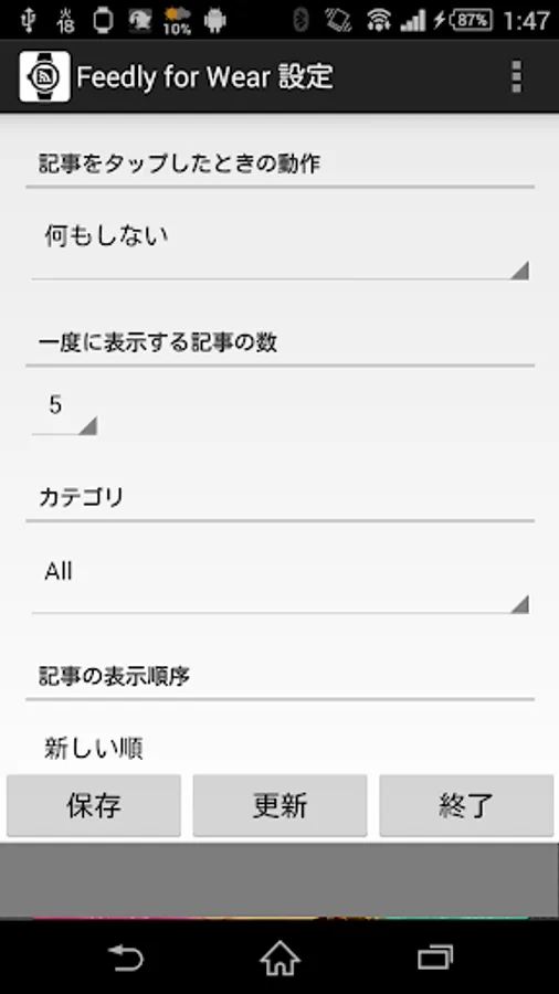 * Every stacked cards has only 12 articles at most, and next 12 articles are stacked on the next card (due to limitation of Android Wear).