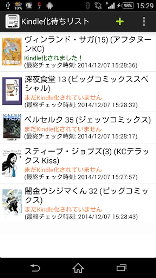 You can make a list of books which are not published as kindle version yet, and can receive a notify when they are publish as kindle version.