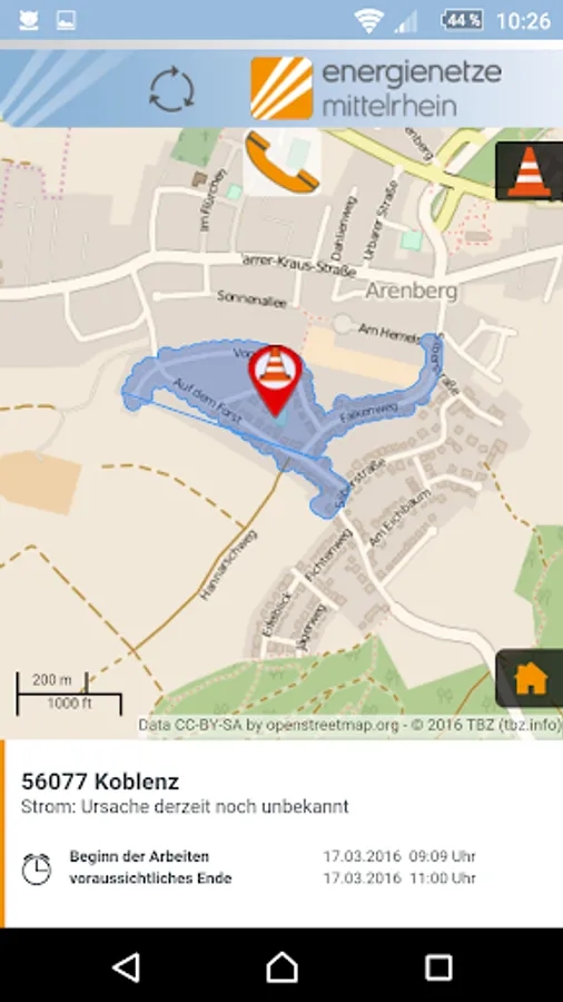 For each event, the start, the possible duration and the affected area are shown in the detail view. For scheduled maintenance reminder can be generated in the calendar of your smartphone.
