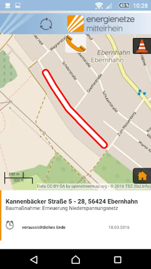 For feeder the app displays all the information on active, scheduled and past activities of the VDE application 4105th The beginning, the duration and the affected area are shown in the detailed description and a map. In addition, feeder can be planned aggregate operations that affect their network area, to be notified via email.