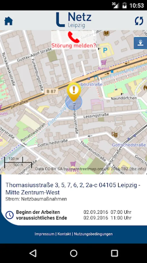 With this app customers of network Leipzig GmbH are quickly informed if z. B. her home port could be affected by maintenance, network construction or a fault in the network.