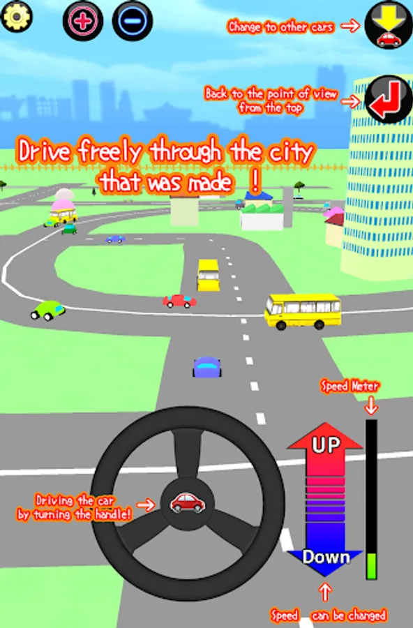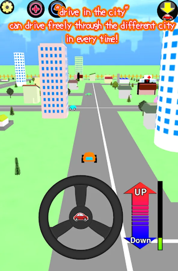* "Drive in the City" to drive around town buildings and houses, the trees
