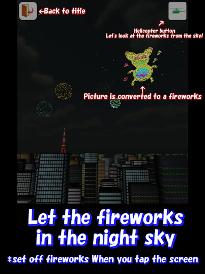 You can be viewing the fireworks from the sky. Press the helicopter button.